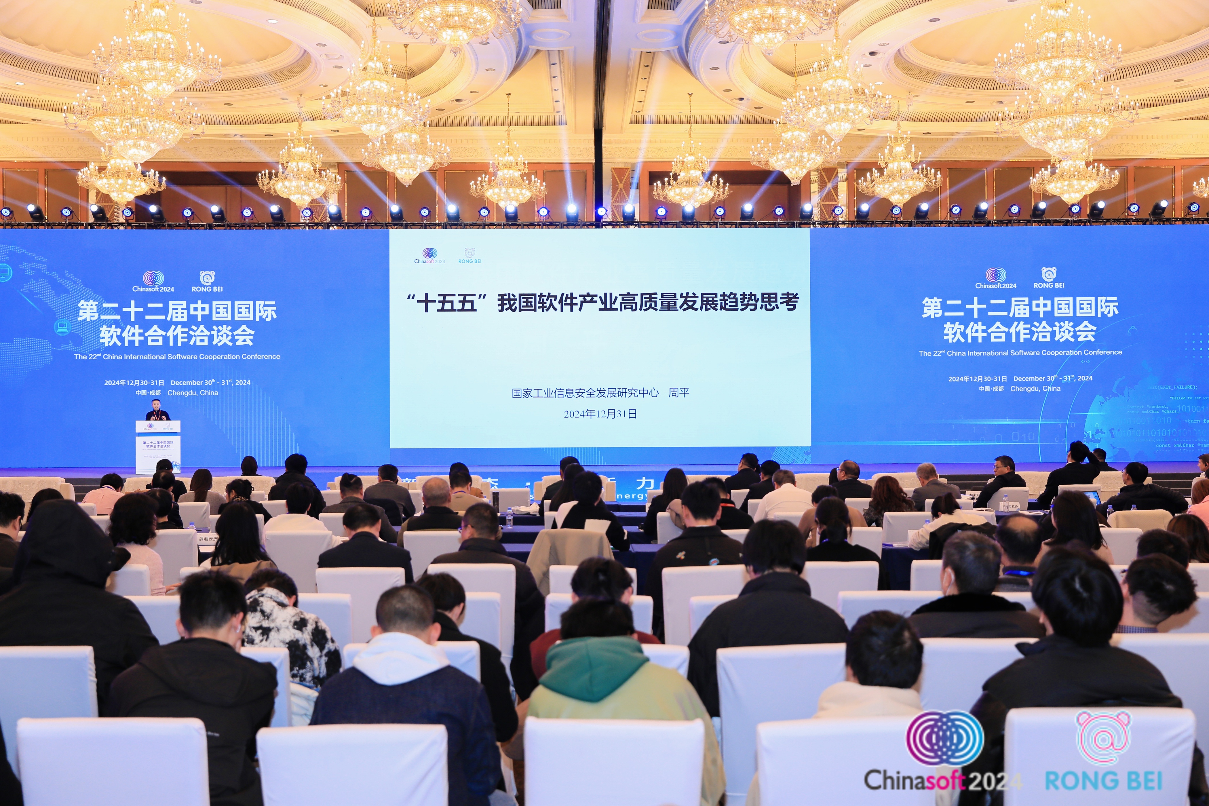 2024年12月31日,由成都市人民政府、四川省經濟和信息化廳以及電子科技大學聯合主辦的第二十二屆中國國際軟件合作洽談會在四川省成都市舉行。國家工業信息安全發展研究中心總工程師周平受邀出席,并就《“十五五”我國軟件產業高質量發展趨勢思考》作主題發言。