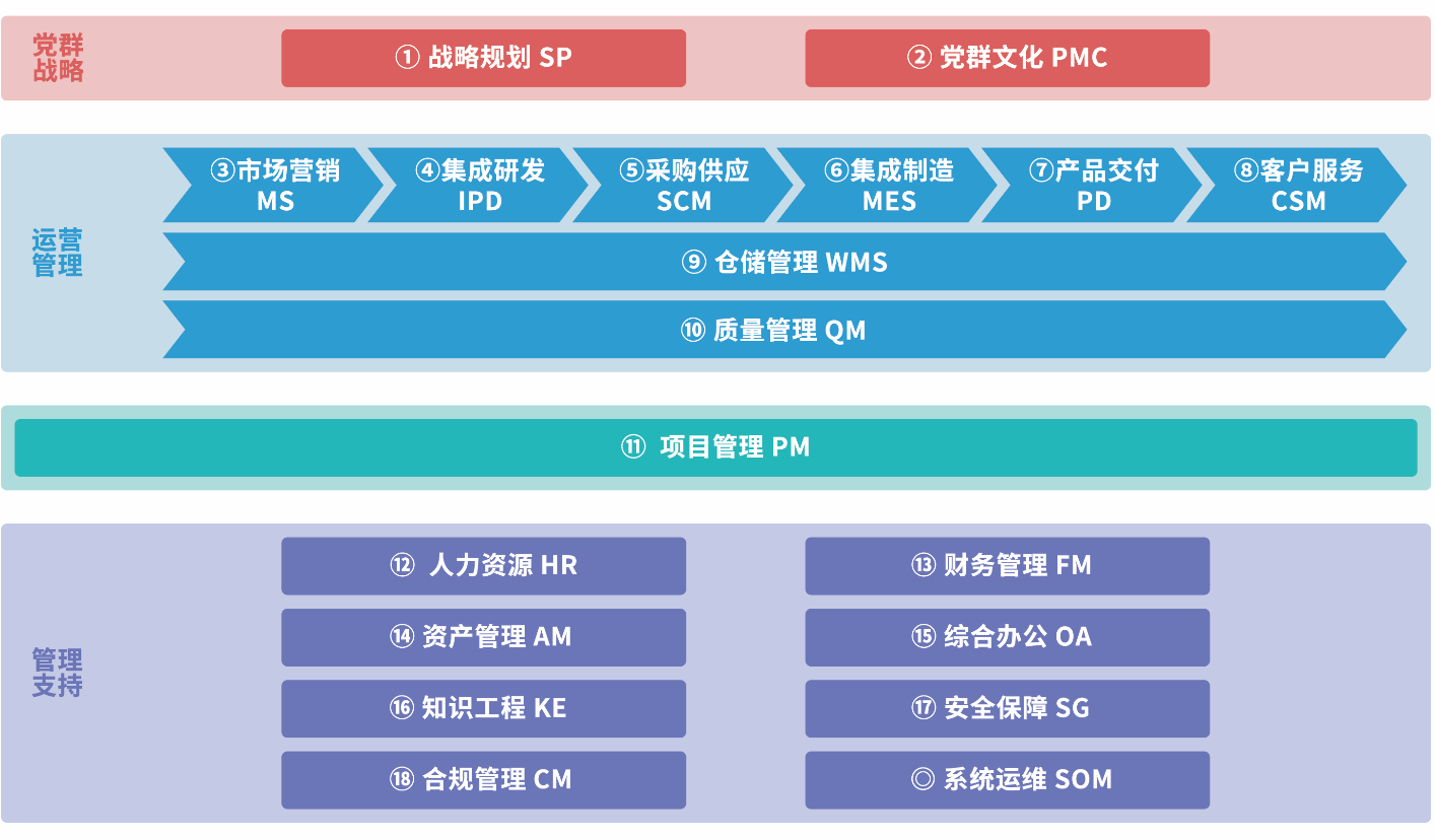 ZOS按照黨群戰略、運營管理、管理支持三個類別劃分為18個業務域,可統一部署應用,也可分模塊部署應用。