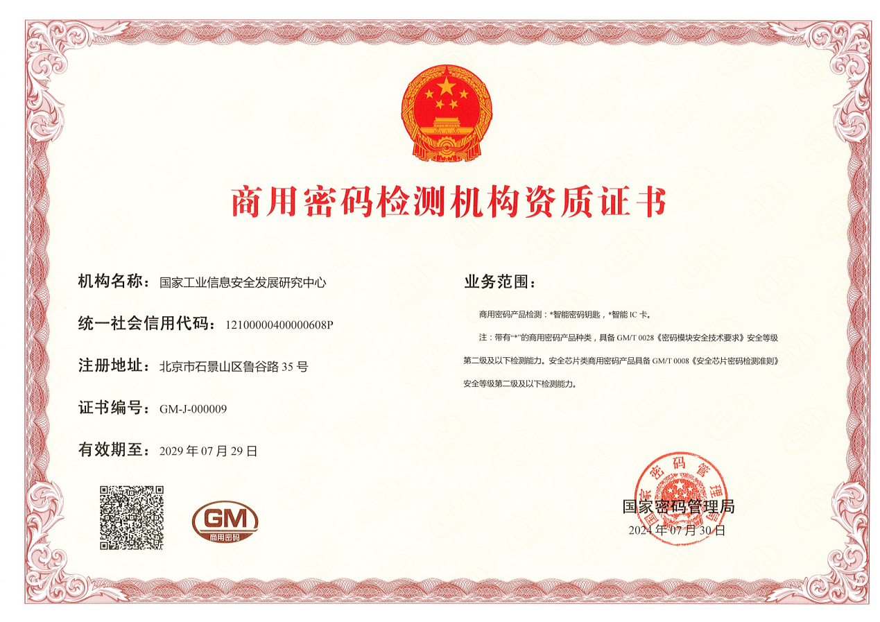 關(guān)注 | 中心獲批商用密碼檢測機(jī)構(gòu)資質(zhì)