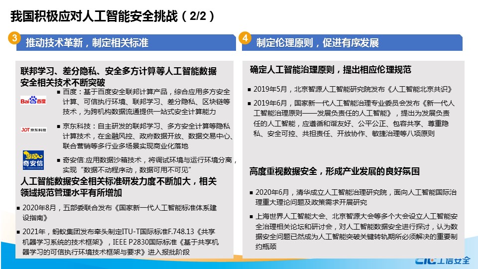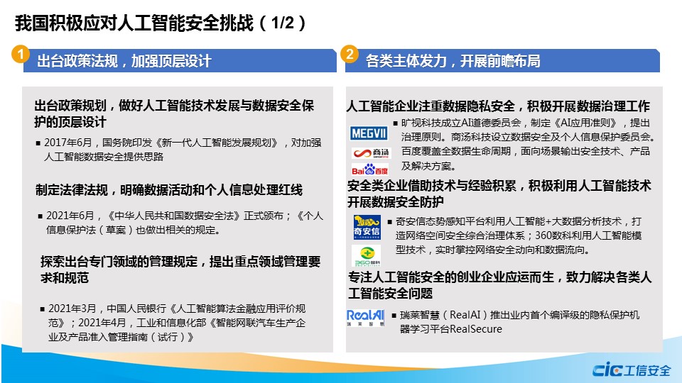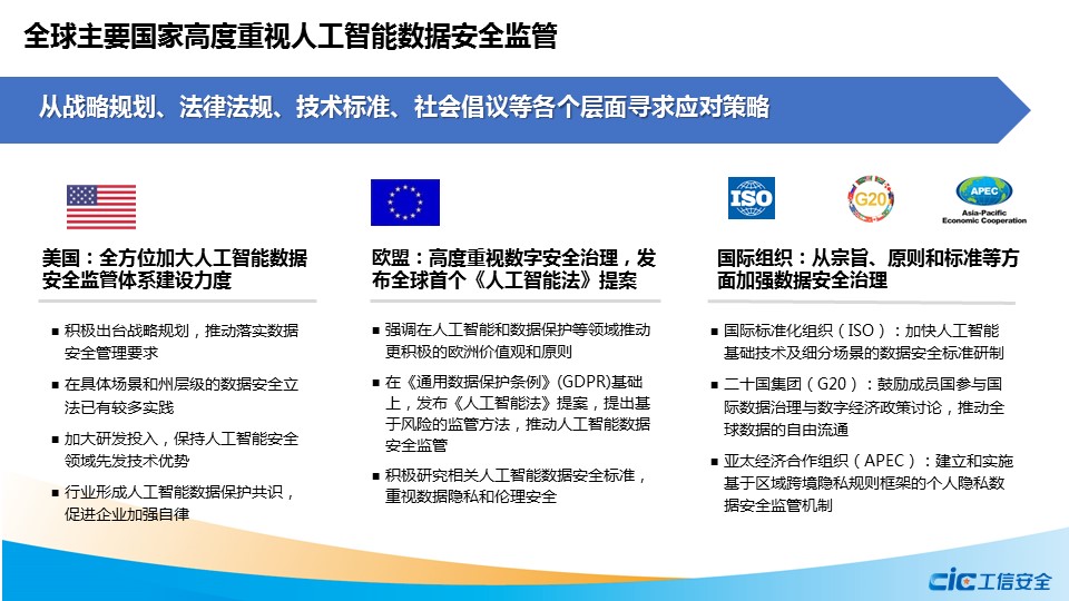 在此背景下,國家工業信息安全發展研究中心聯合奇安信集團虎符智庫撰寫《人工智能數據安全與監管機制研究》報告,圍繞人工智能數據安全的內涵及體現、全球主要國家監管措施、我國安全風險應對舉措以及對策建議等方面開展分析研究,旨在掌握人工智能數據安全發展態勢與監管現狀,主動應對人工智能數據安全風險,為我國人工智能安全健康發展提供支撐。