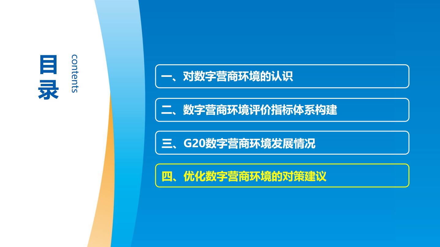 報告強調,持續優化數字營商環境是數字經濟發展的重要條件??傮w來看,各國的數字營商環境還有較大提升空間,這要求各國要進一步完善數字支撐體系,加快網絡基礎設施建設;平衡好發展和安全的關系,堅持數據開發利用與安全保護同步推進;積極放寬和優化數字市場準入,堅持包容審慎的新業態新模式治理規則;構建公平競爭的數字市場體系,并營造良好的數字創新環境。