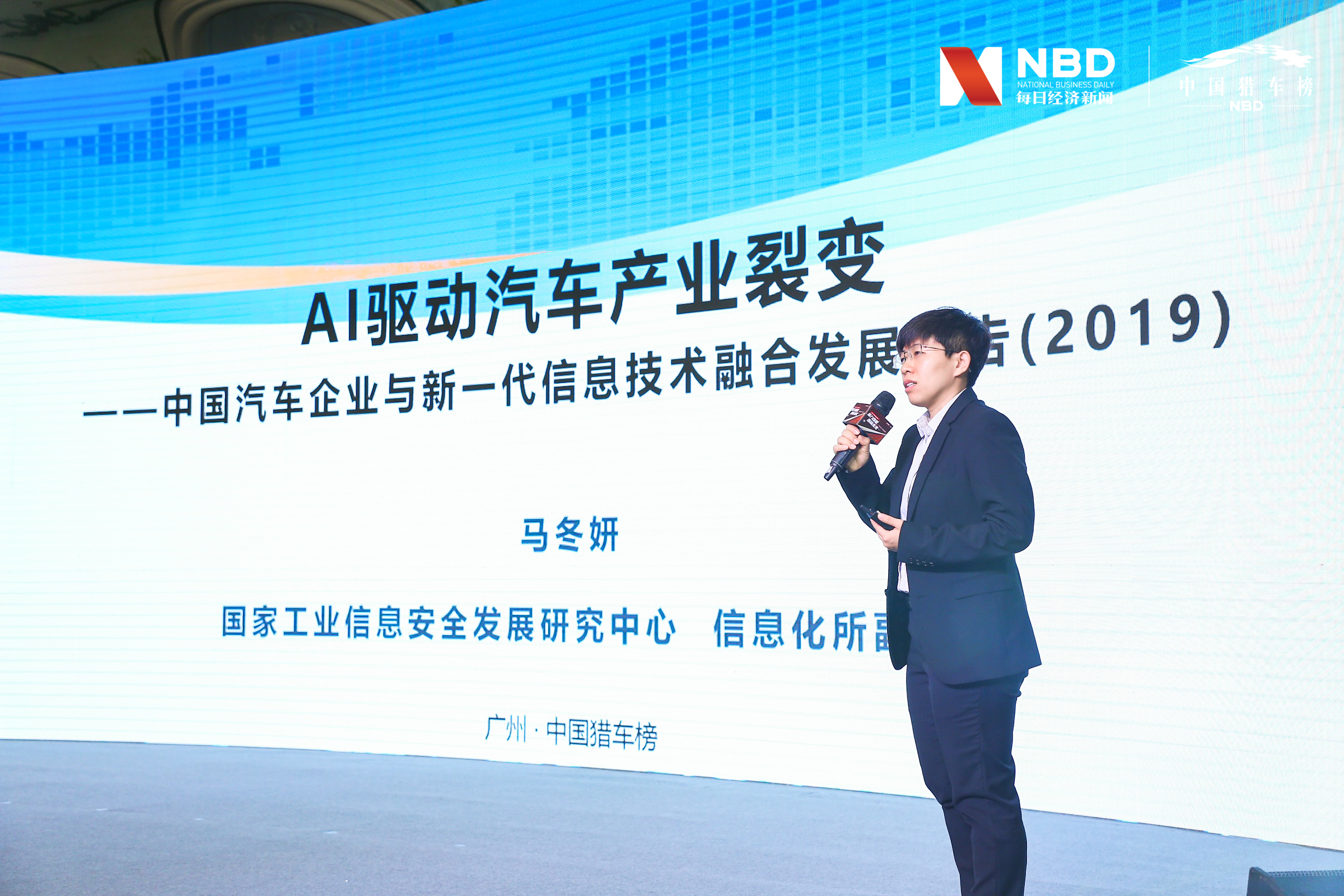 11月21日上午,由中心信息化所與每日經濟新聞聯合研制的《AI驅動汽車產業裂變——中國汽車企業與新一代信息技術融合發展報告(2019)》(以下簡稱《報告》)在第十一屆中國獵車榜隆重發布。《報告》由中心信息化所副所長馬冬妍具體發布。