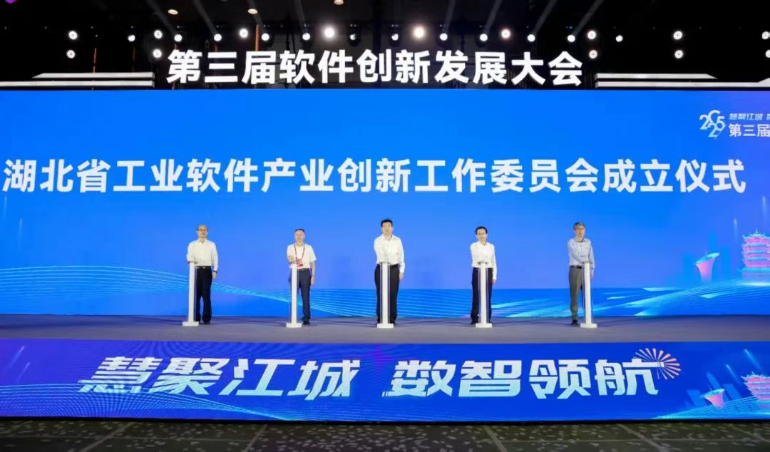 為推動區域軟件產業高質量發展,高水平建設工業軟件創新協作平臺,會上,湖北省工業軟件產業創新工作委員會正式成立,湖北省經濟和信息化廳黨組書記、廳長朱萬奎,武漢市委常委、東湖高新區黨工委書記沈悅,中心總工程師周平,華中科技大學教授沈衛明,武漢開目信息技術股份有限公司董事長陳萬領共同為工委會揭牌。