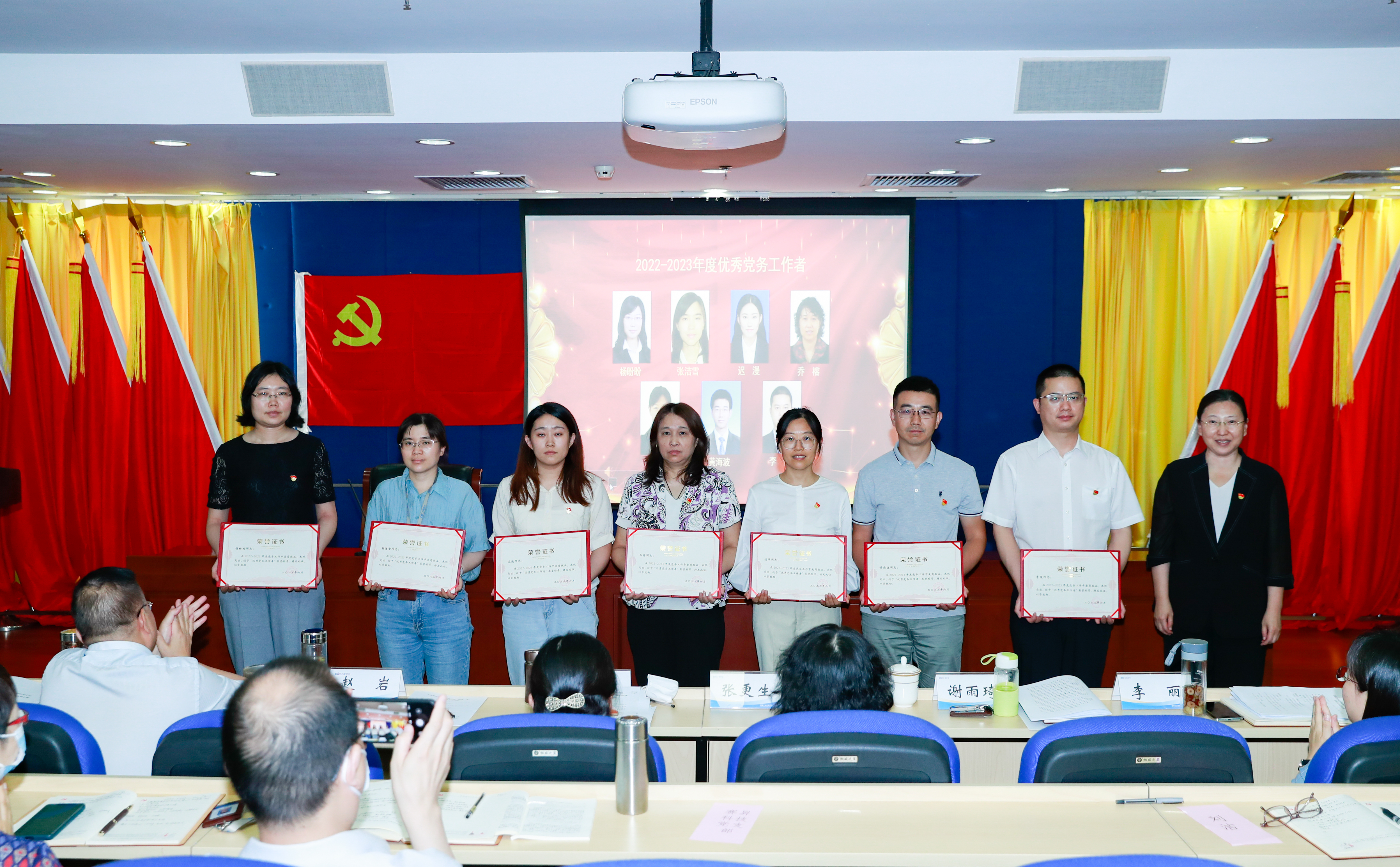 在“兩優(yōu)一先”表彰環(huán)節(jié),蔣艷同志宣讀了表彰決定,中心領(lǐng)導(dǎo)班子成員為獲得先進(jìn)黨支部、“學(xué)思想 建新功”黨員標(biāo)兵、優(yōu)秀共產(chǎn)黨員、優(yōu)秀黨務(wù)工作者的集體和個(gè)人頒發(fā)榮譽(yù)證書。中心黨委號召各黨支部和廣大黨員要向受表彰的先進(jìn)集體和個(gè)人學(xué)習(xí),將榜樣力量轉(zhuǎn)化成為推進(jìn)中心事業(yè)高質(zhì)量發(fā)展的具體行動(dòng)。